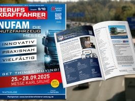 Neben den Neuheiten im Bereich Fahrzeuge / Technik und unseren aktuellen Informationen für Berufskraftfahrer berichten wir unter Anderem ausführlich über diese Schwerpunkt-Themen: