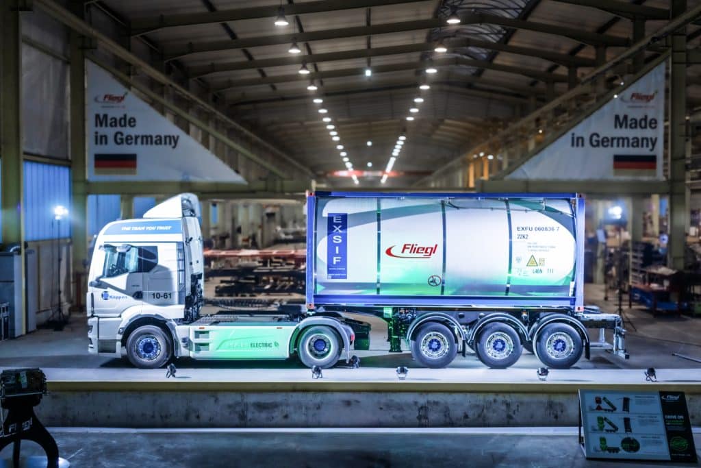 Speziell für den Einsatz mit E-Sattelzugmaschinen: Fliegl-Chemiechassis