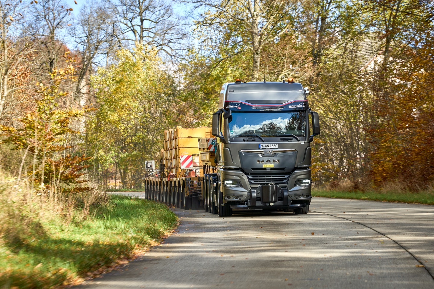 Das neue Schwerlastangebot entsteht als komplette Werkslösung von MAN Individual: Das vierachsige Basisfahrzeug wird im Werk München produziert und anschließend im MAN Truck Modification Center in Wittlich mit Schwerlastkupplungen, verstärkter Kühlung, sowie Diesel- und Hydrauliktank ausgestattet.